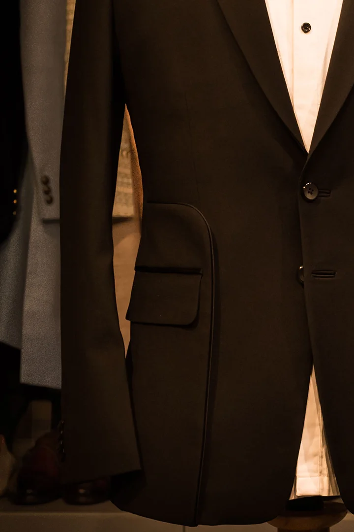 Complete the look with patent black shoes and a sleek pocket square. For added refinement, pair with a minimal cufflink set.