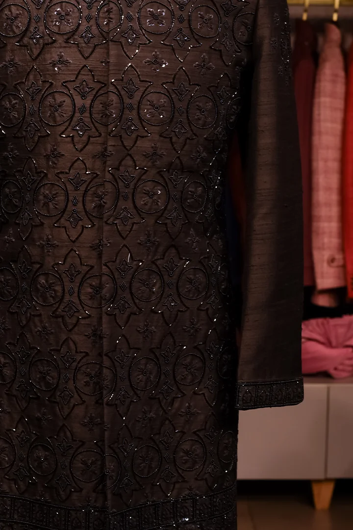 Hand-embroidered by skilled artisans, this piece showcases meticulous workmanship and refined finishing. PKIN’s signature detailing ensures luxurious aesthetics and a flawless tailored fit.